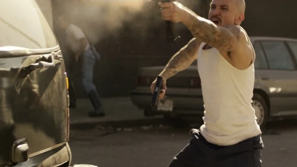 Paul and Dixon follow up on a lead at a pawn shop where they uncover a prostitute named Irina selling a watch, owned by Caspere. Under pressure from Vinci PD to close the case, Velcoro, Bezzerides, Woodrugh, Dixon and the police lead a raid against Irina's pimp, Ledo Amarilla, as his fingerprints were found on the watch. However, they are ambushed when the building is found to be a methamphetamine lab. One of Amarilla's henchmen opens fire on the police, killing numerous officers in the process. As Amarilla tries to escape, he crashes his SUV into a city bus during a demonstration against the rail project. He and his accomplices then open fire on the crowd as the police move in, killing numerous unarmed civilians and policemen. After all of his men are killed, Amarilla takes a nearby hostage and once Velcoro and Woodrugh refuse to back off, Amarilla executes the hostage and attempts to shoot both men but is ultimately shot to death by Velcoro and Woodrugh. Velcoro, Bezzerides and Woodrugh are left horrified at the mass civilian and police casualties after the long gunfight is over.